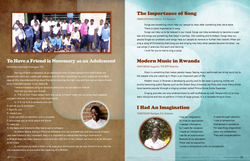 Student-oriented magazine to encourage literacy and reading culture. Volunteers and teachers from all over Rwanda participated, and trainings were conducted on various types of creative writing, with exercises and ideas for their classes. The students wrote on a subject of their choice, and sent them in for publishing. Funding from the USG made it possible for to deliver on-site trainings, and to print and distribute the magazine at no cost to all 1200+ participants in all four provinces.